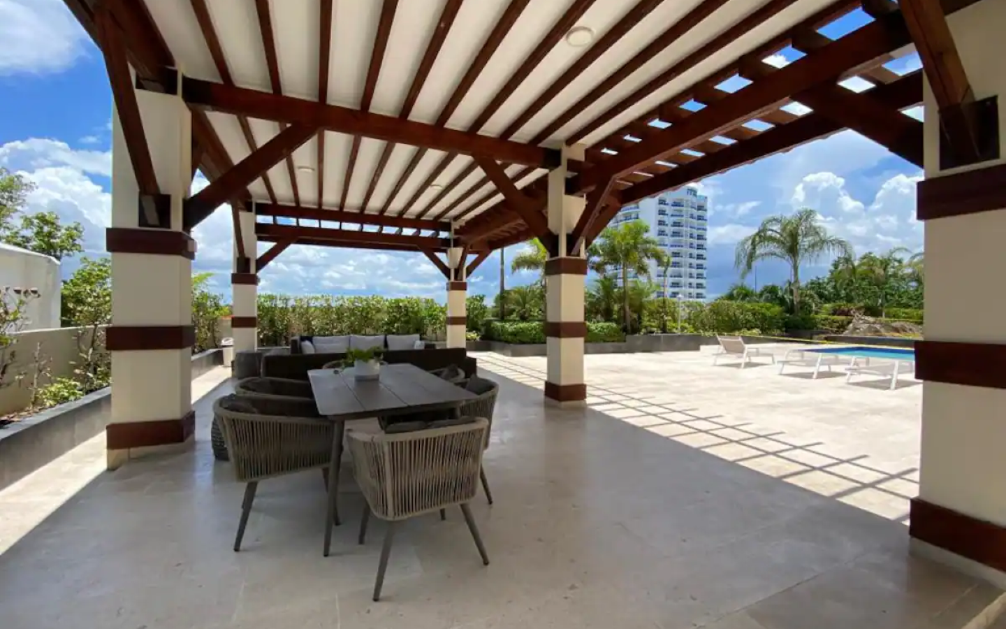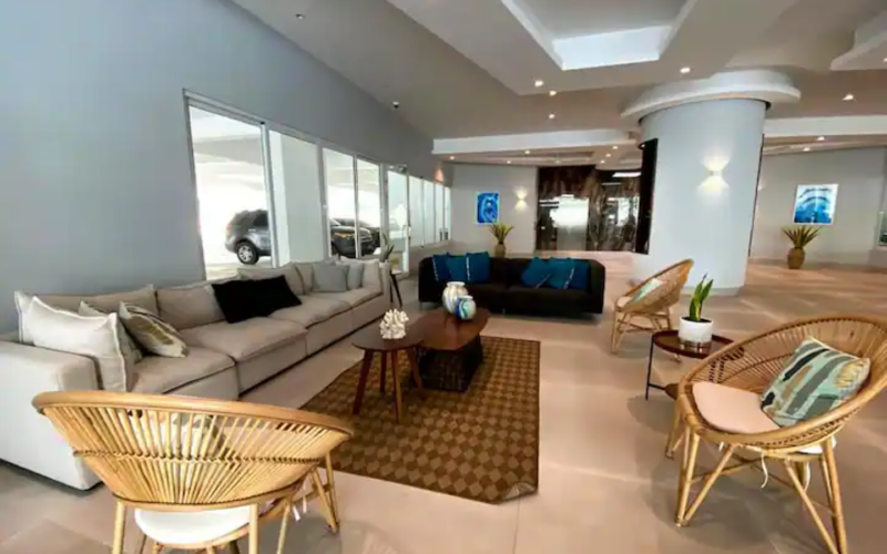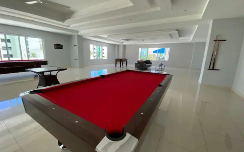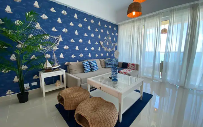 Villa Palmera Oceanfront Ubicado a solo 20 minutos del aeropuerto internacional de Las Américas y a 30 minutos de Santo Domingo. Nuestro apartamento totalmente amueblado ofrece un montón de comodidades en el sitio tales como: 2 piscinas, 2 jacuzzis, área de juegos para niños, gimnasio, lavadero, múltiples áreas sociales con acceso para barbacoa, estacionamiento privado, seguridad las 24 horas y más. Playa, bares y restaurantes a poca distancia a pie.